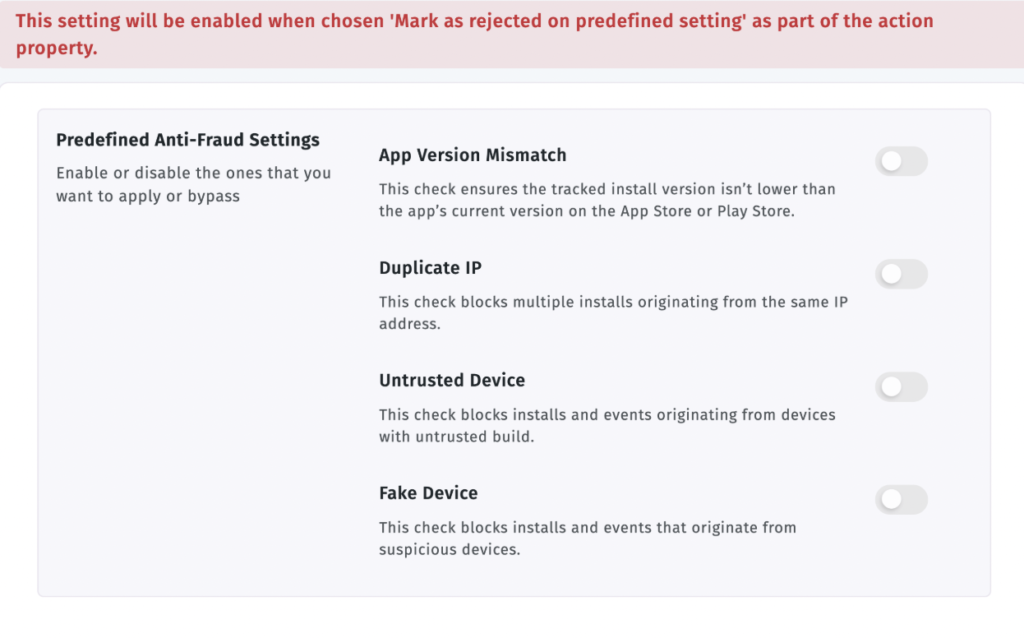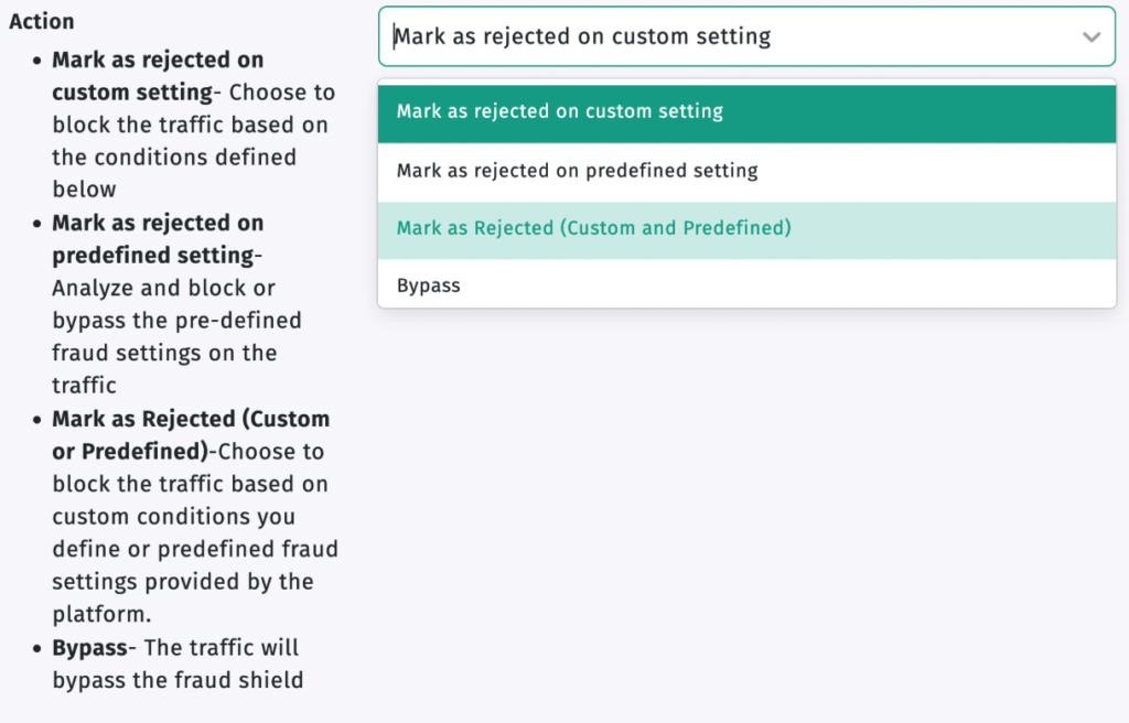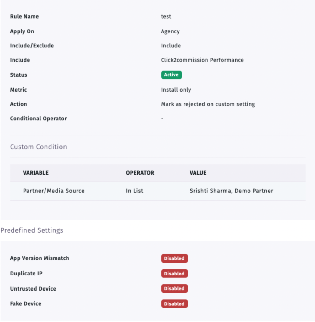 Apptrove’s Fraud Shield provides structured real-time fraud protection for partners, agencies, and UniLink traffic. By combining Predefined Filters and Customizable Rules, you can gain granular control over what would be classified as suspicious activity within your Ecosystem.